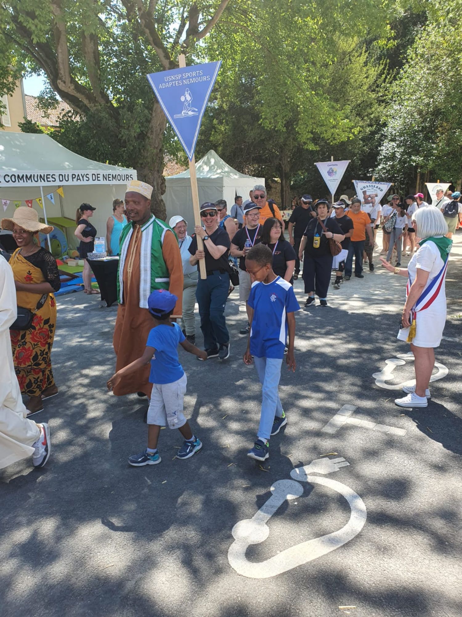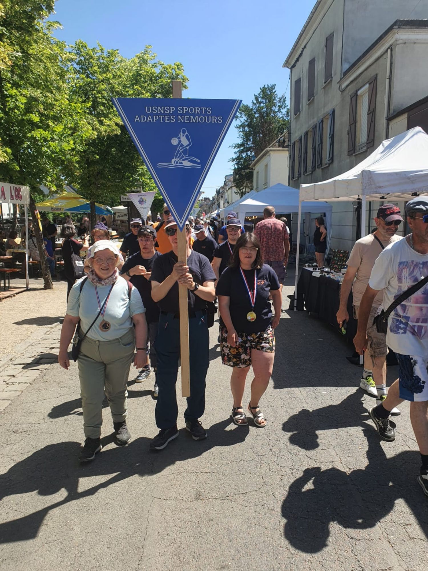 Le défilé dans les rues de Nemours est un moment fort de la foire, où les associations locales, dont l'USNSP Sport Adapté, défilent aux côtés d'autres groupes et organisations. Cela permet de mettre en valeur les différentes initiatives et activités proposées dans la région, tout en créant une ambiance festive et conviviale. Merci à nos participants d'avoir répondu présent sous le soleil et la chaleur.